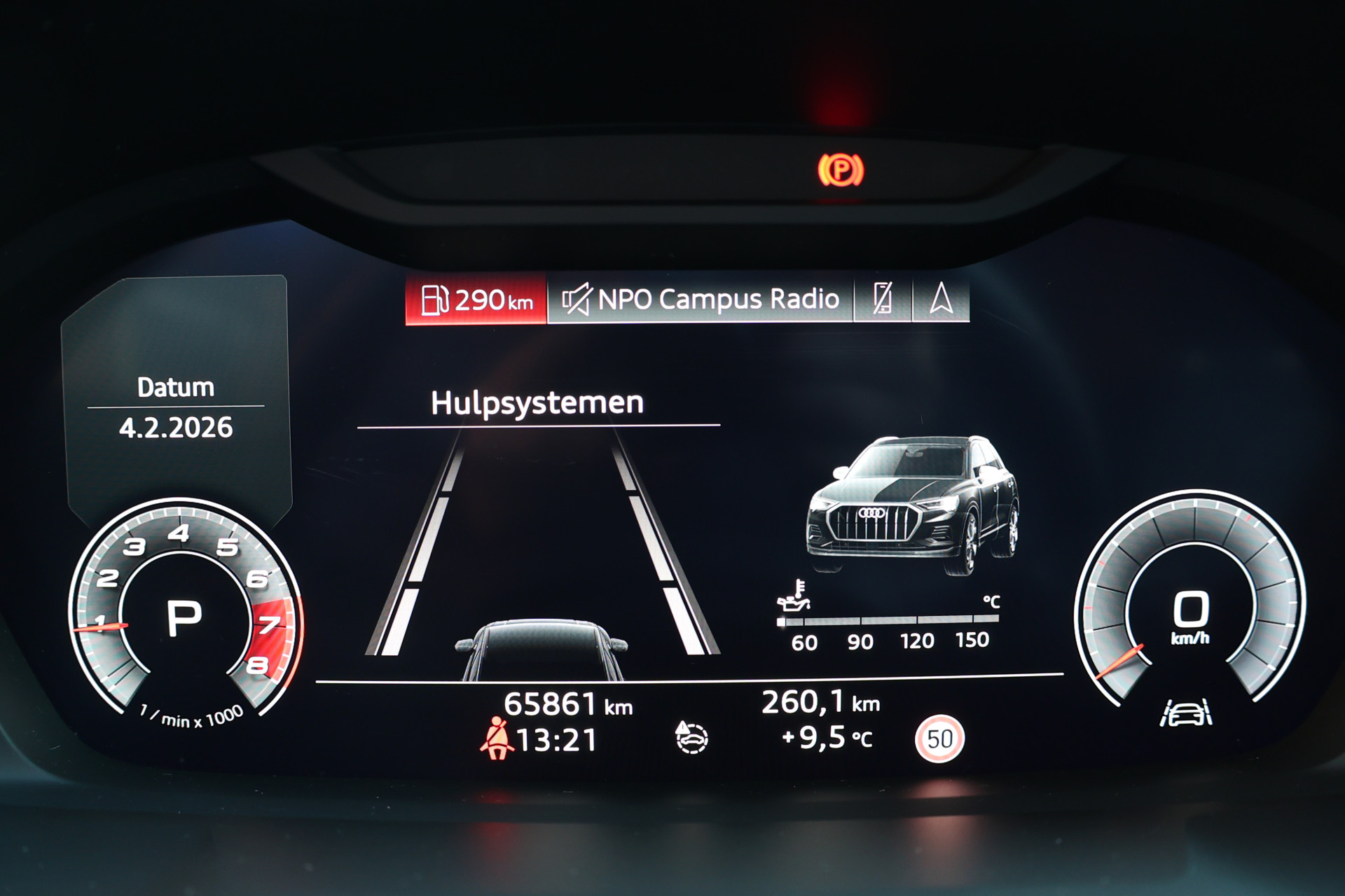 De nieuwste veiligheidssystemen komen in deze Audi Q3 samen. Dat de auto steeds meer taken van de bestuurder overneemt, merkt u bijvoorbeeld aan het systeem voor verkeersbord-detectie in deze Audi. Voorzien van het Lane-keeping systeem. Ofwel: blijf automatisch in je baan. Forward collision warning waarschuwt voor een kop-staart botsing. De veiligheid van deze auto wordt verder verhoogd door dodehoekdetectie, hill hold functie, autonoom remsysteem en bandenspanningcontrolesysteem.