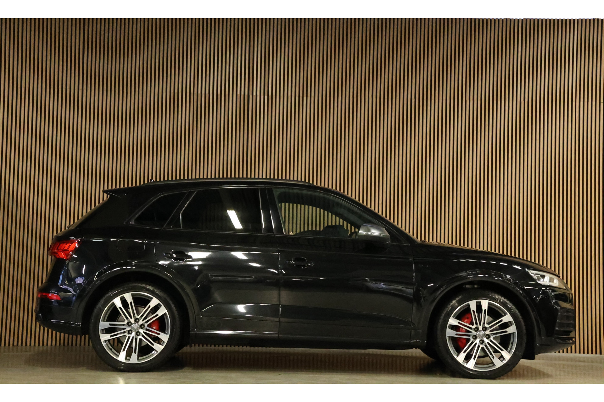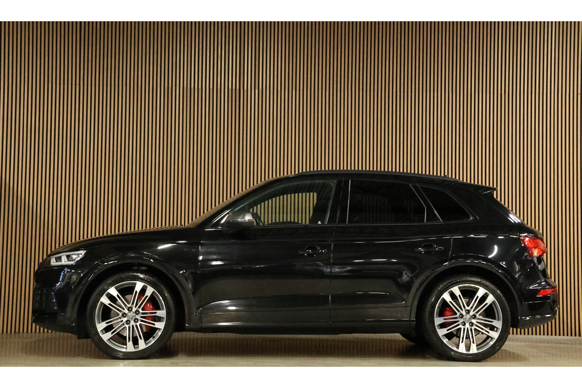 Ontspannen en zorgeloos autorijden, dat doet u met deze Audi Q5. Met de kenmerkende S-Line styling toont deze Audi zich van zijn sportieve kant. Trap het gaspedaal in en voel de geweldige acceleratie van deze auto. Voor een optimale rijhoogte, meer comfort en verhoogde stabiliteit zorgt de automatische luchtvering. Niets geeft meer gevoel van luxe en comfort dan een lederen interieur. Ook dat is hier meegeleverd Deze Audi Q5 heeft verwarmbare voorstoelen, voor zowel bestuurder als bijrijder. Opvallend zijn de stoere sportstoelen, die zorgen voor een onwrikbare zit in de scherpe bochten. Een praktische extra is de elektrisch bedienbare achterklep die opent en sluit met een druk op de knop. Perfect zicht bij nacht en slecht weer? Dat leveren de koplampen met matrix LED-verlichting. Bij de uitrusting van deze auto horen onder meer 20 inch lichtmetalen velgen, sportonderstel, warmtewerend glas, dakspoiler, in delen neerklapbare achterbank en LED-achterlichten.