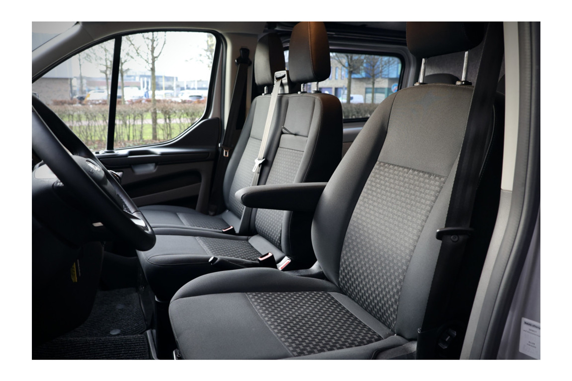 Zoals u mag verwachten van deze Ford Transit Custom is hij uitgerust met een reeks aan actieve veiligheidssystemen. Het Lane-keeping systeem doet precies wat nodig is: waarschuwen en corrigeren bij onbedoelde overschrijding van de rijstrooklijnen. Vermoeid achter het stuur zitten vergroot de kans op een ongeval. Vermoeidheidsherkenning waarschuwt tijdig als u aan een rustpauze toe bent. Een noodstop maken doet u liever niet. Maar áls het nodig is, geeft de Brake Assist maximale ondersteuning. Bovenop deze veiligheidsfeatures heeft deze Ford bovendien dodehoekdetectie en hill hold functie.