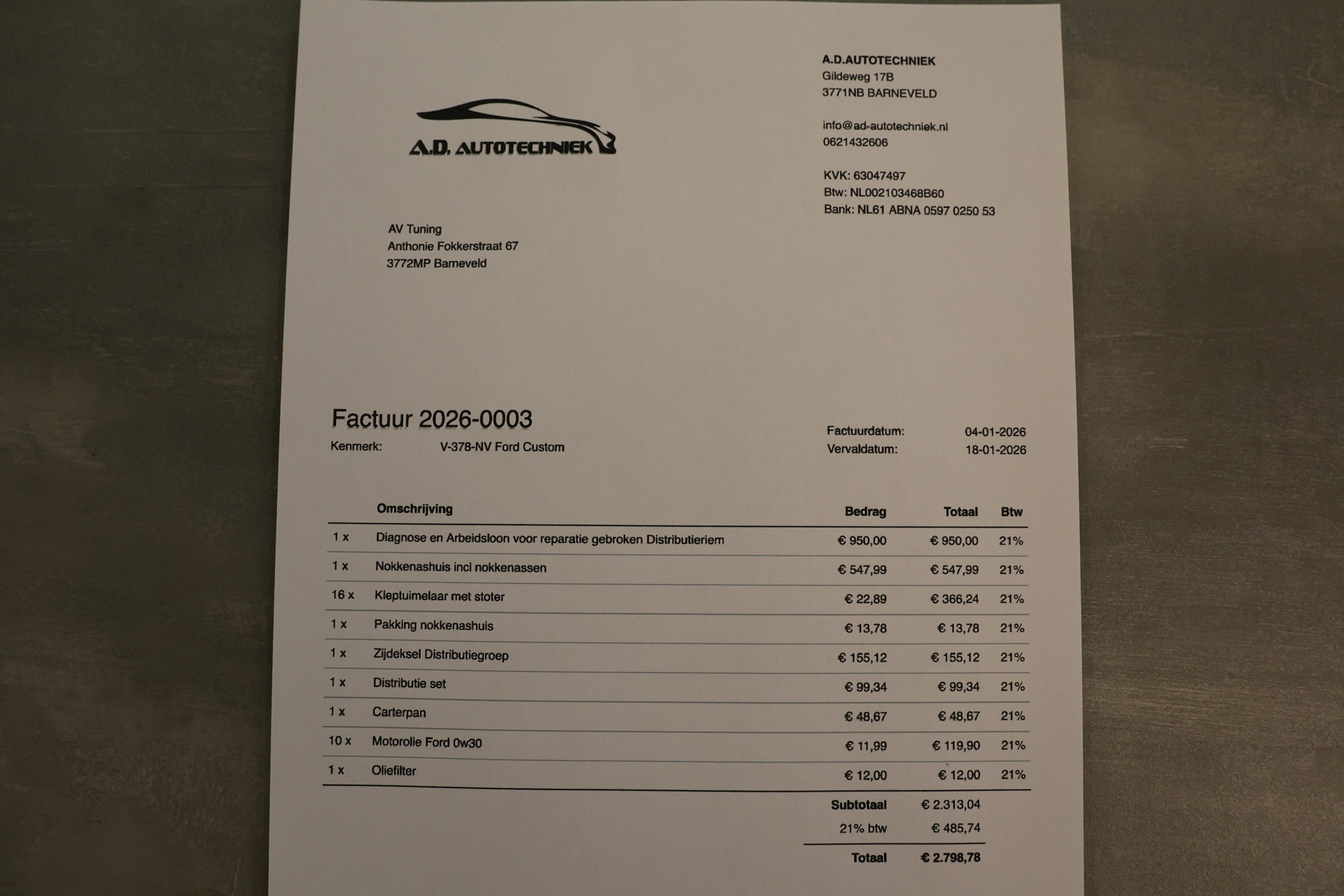 Fabrikant: AV Automotive Anthonie Fokkerstraat 67 3772MP BARNEVELD, NL 0630354999 http://www.avautomotive.nl info@avautomotive.nl